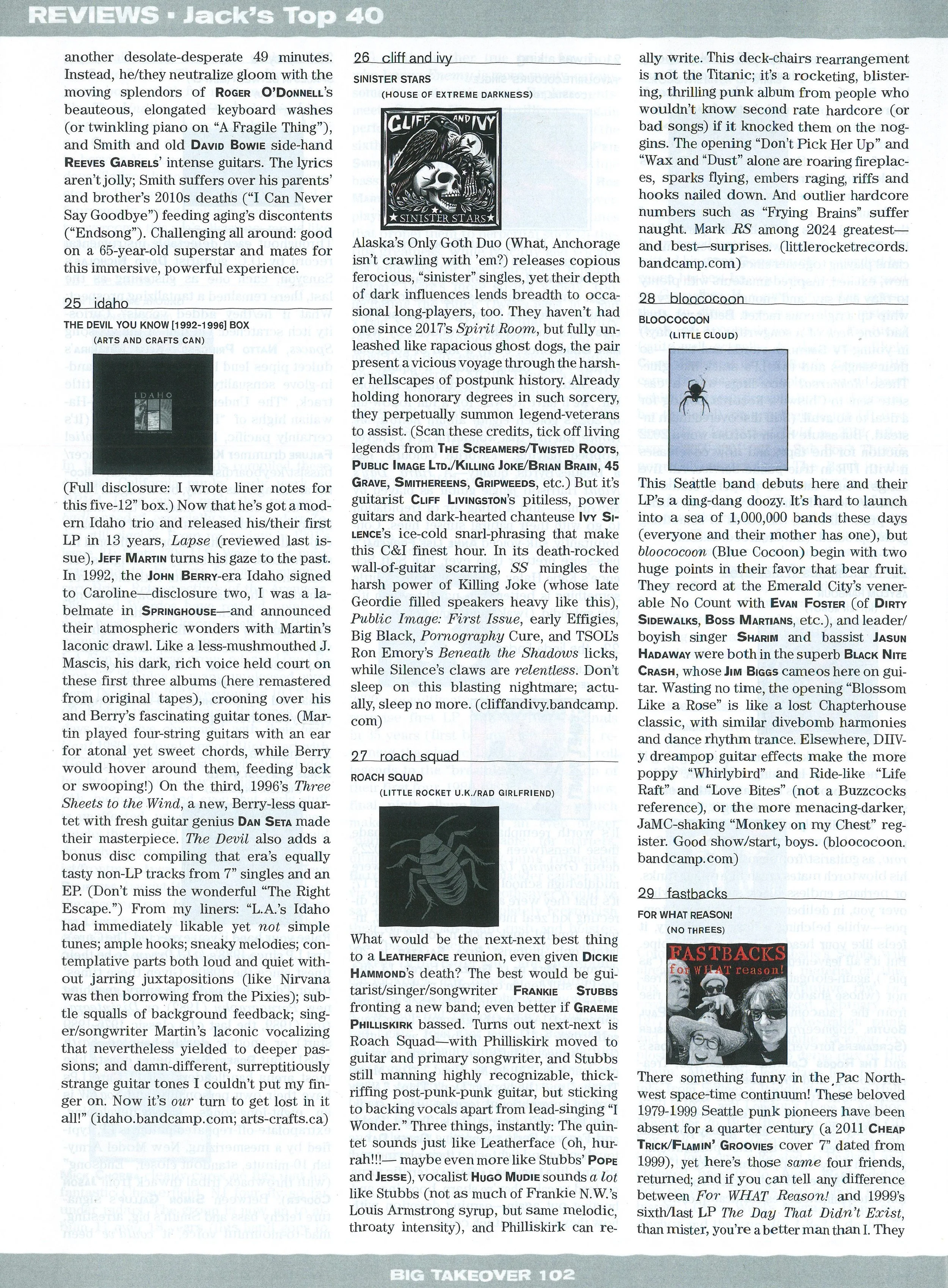 ● Jack Rabid’s Best of 2024 – The Big Takeover – Included #56 among the top 200 albums and singles of the year.